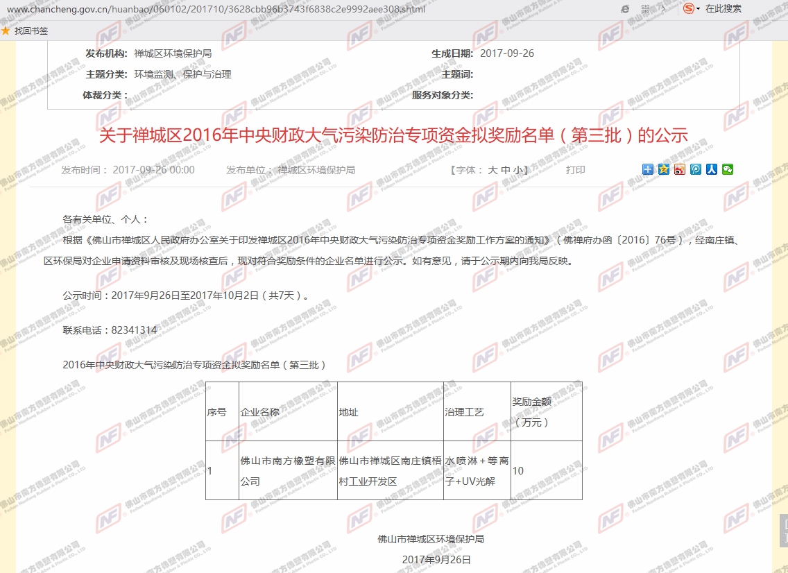 中央財(cái)政大氣污染防治專項(xiàng)資金獎(jiǎng)勵(lì)名單